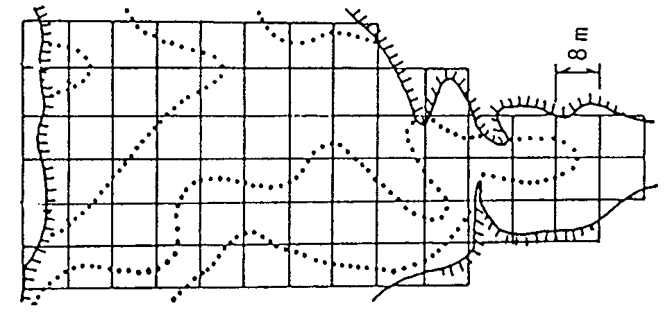 | 図3.番所崎貝類相調査のデザイン。4416m2の岩盤を69の格子区画に分割した。Ohgaki et al. (1999)による。 |
