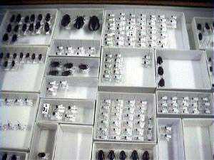 第二収蔵庫は植物や昆虫・キノコなどの乾燥標本を保管する部屋.空調によって24時間365日20度湿度50%に保たれています.防虫管理のためにナフタリンが使われているため,この部屋にはいると臭いでビックリするかも知れません.部屋は標本をしまう棚がびっしりと並んでいます.