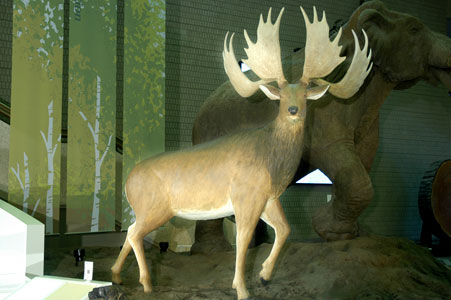 A huge elk with big antlers that has gone extinct. Its fossils are often found at the same places with fossils of the Naumann Elephant.