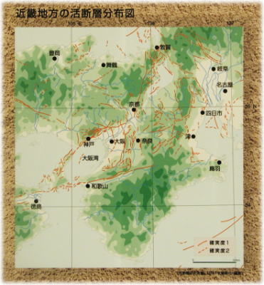 大阪的歷史。大阪周圍三邊被北攝山地、金剛—生駒山地、和泉山脈包圍。在山麓有丘陵、連接著廣布的平原,然後下至大阪灣。在山地可以見到古代的岩石與地層,丘陵和平原則是由新的時代的地層所形成。於平原與丘陵和山地之間有活斷層,由於大約從100萬年前開始的活斷層活動,就會以1000年一次左右的間隔發生地震,讓山地變高、平原部分變低,而逐漸形成現在的地形。
