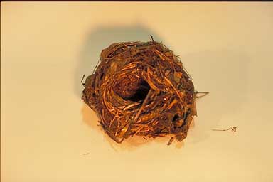 枯草などを使った横に入口のあるボール形の巣で、産座に獣毛、繊維などを敷く