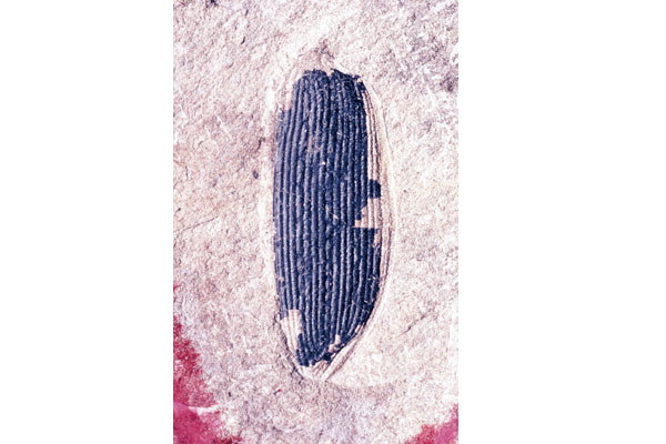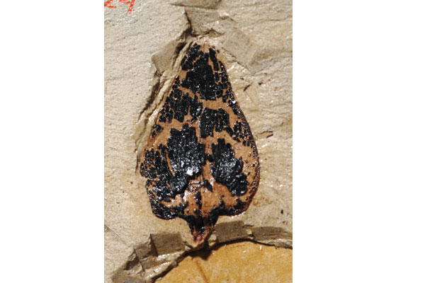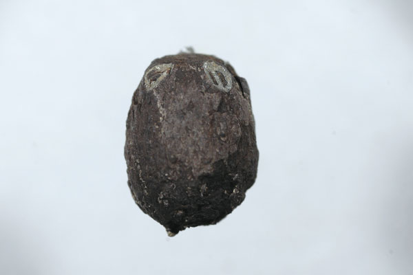 | 内果皮. 先端部に発芽孔がある.中新世.滋賀県土山町.長さ2cm. |