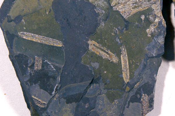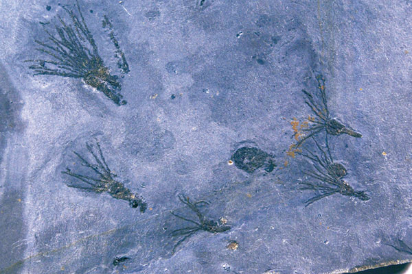 カンブリア紀は三葉虫が、オルドビス紀以降は腕足類、ウミユリ、床板サンゴ類などが繁栄しました。シルル紀・デボン紀以降は頭足類や魚類が栄えるようになります。