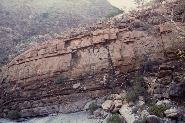 これらの証拠が、アフリカ南部のナミビアなどの6億年前および7億年前の地層に残されています。氷河に覆われたことでできる地層が当時の赤道域まで広がっていたことと、地層中の炭素同位体の分析から、生物活動が(ほぼ)全く存在しないこと(光合成が行われていない)がわかったのです。