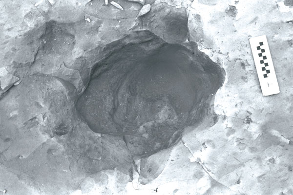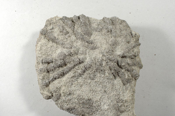 | 左の化石にこの化石のアンモナイトの殻の模様が岩石に残されている.白亜紀.北海道美唄市.幅6.7cm. |