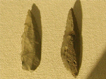 3万年前ごろになるとナイフ形石器が登場します。後期旧石器時代の日本列島を特徴づける石器で、狩猟具として使用されたようです。その形は各地で特色があり、近畿地方ではサヌカイトを利用した国府こう型ナイフ形石器がつくられました。