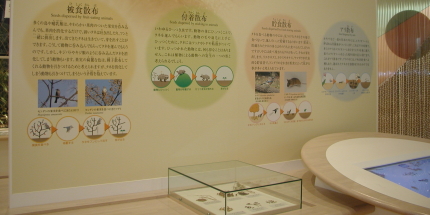 植物はさまざまな方法で、タネを散布します(種子散布)。風や水などを使った種子散布の他に、動物を使った種子散布があります。動物からすると、タネはおいしい食べ物でもあります。動物にタネを食べられずに、でも動物をひきつけて、うまく動物にタネを運んでもらわなくてはなりません。動物による種子散布は、4つに分けることができます。