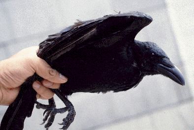 頭の良さそうなカラスがかすみ網なんかにかかるとは驚きでした。羽根の力が強く、他の写真のように足だけを持って写真は撮れないので、翼も押さえました。20羽くらい集めれば、ゲゲゲの鬼太郎のように飛べそうです。