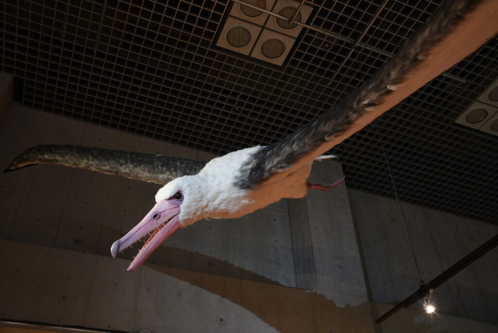 また、史上最大級の飛ぶ鳥「ペラゴルニス・サンデルシ」の生体復元モデルを日本初公開で展示します。現生の飛ぶ鳥で最も大きな「ワタリアホウドリ」の2倍以上で、翼を広げた長さが7mに達した「ペラゴルニス・サンデルシ」の生体復元モデルは見応え抜群です。
