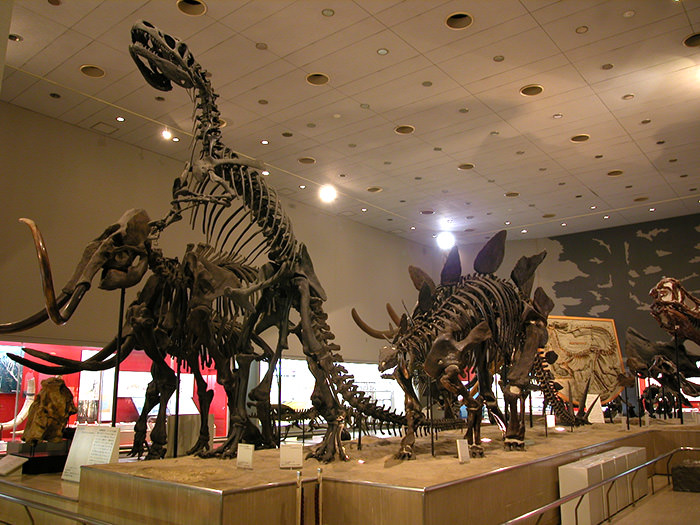 Exhibits in this room are laid out in chronological order going back into history, which you can travel from current to ancient times. It starts from nature as we know it now to nature at the end of the Last Ice Age, then even further back to the age of mammals and gradually to much older times. Let’s expand your imagination and think about the history of life forms from long in the past, bit by bit, to a little bit back in time from the familiar organisms of today.