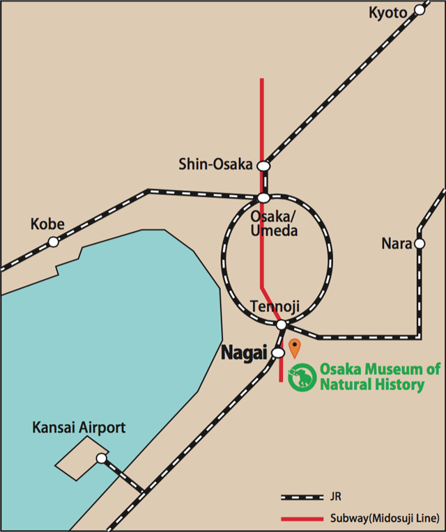 Take Osaka Municipal Subway, Midosuji Line bound for Nakamozu, and get off the train at Nagai station (approx. 25min), go out from the 3rd exit and walk 8min.