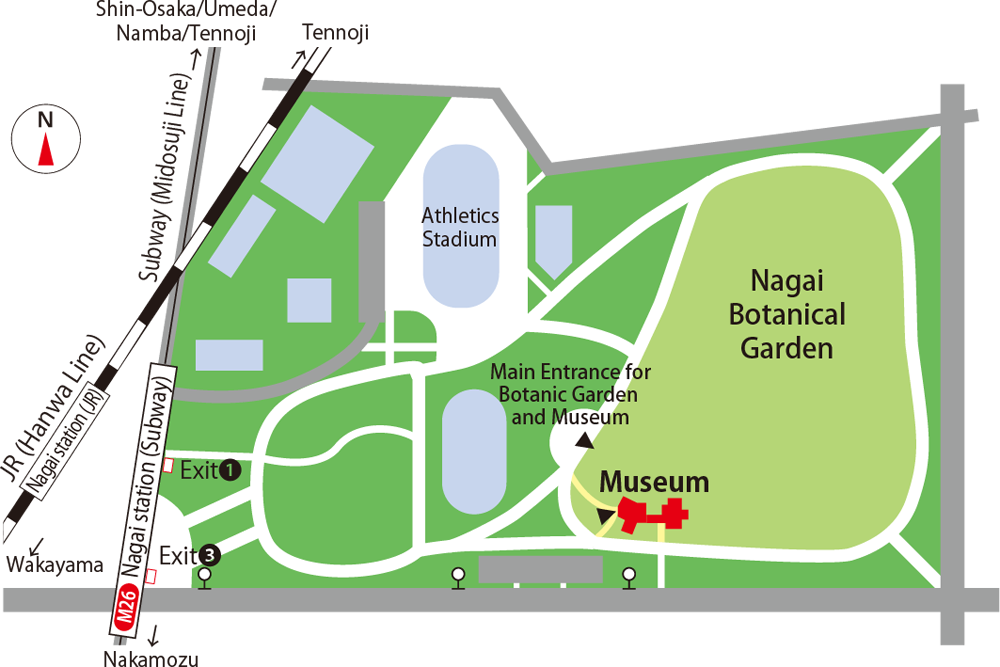 The museum is situated in the Botanical garden of Nagai Park, Higashi-sumiyoshi-ku.