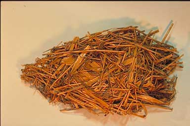 ヨシなどの枯葉を折りたたむようにした厚みのある皿形の巣