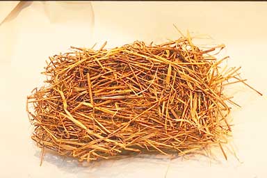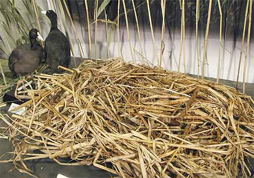 ヨシなどの枯葉を折りたたむようにした厚みのある大きな皿形の巣