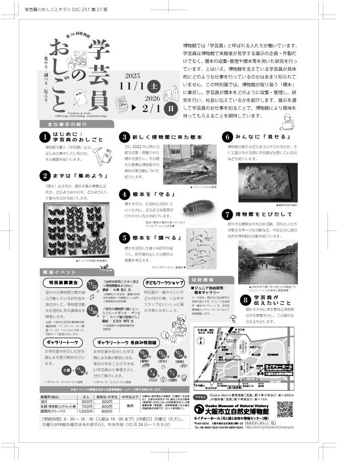 特別展「学芸員のおしごと −集める・調べる・伝える−」の内容がぎゅっとつまった解説書(販売価格500円)を会場およびミュージアムショップ、オンラインショップにて販売します。