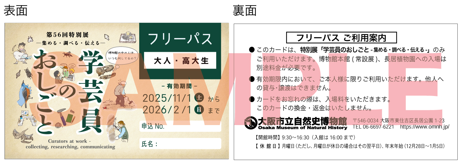 期間内フリーパスをご購入の方に「見つけたら教えて!博物館の害虫」カード全8種1セットを差し上げています(限定100セット)。