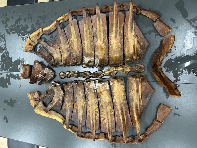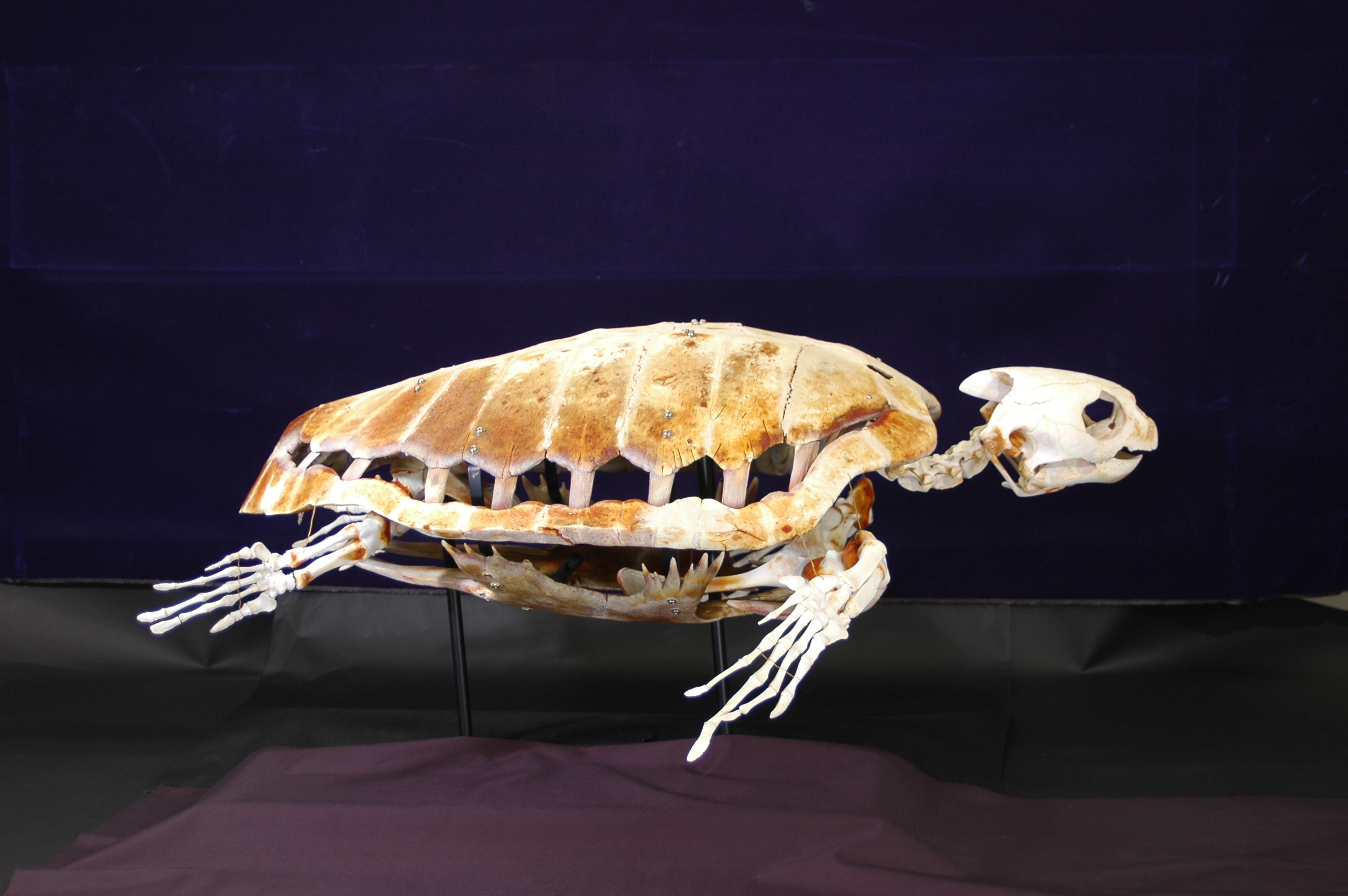 写真はアカウミガメの交連骨格標本と[10]、組み上げられていないバラバラの骨格標本[11]です。