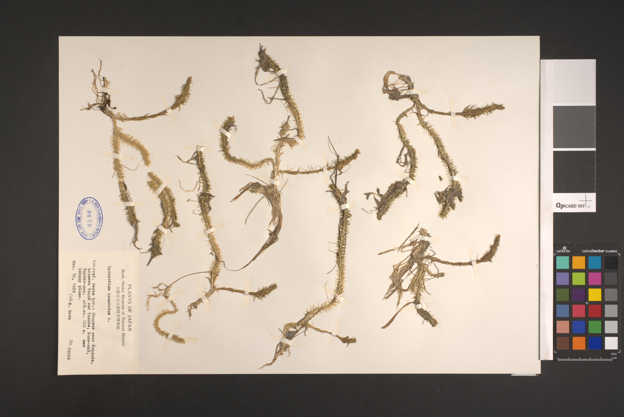 大阪北部で採集されたこの古い標本が、確かに大阪にヤチスギランが生育していた証拠となっています。