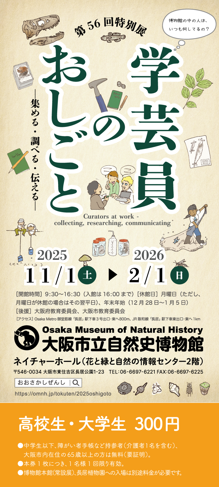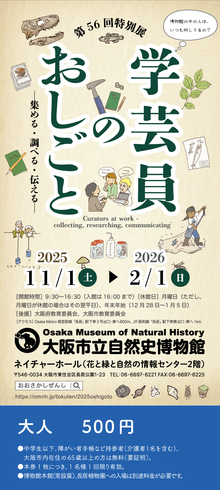この特別展では、博物館が取り扱う「標本」に着目し、学芸員が標本をどのように収集・管理し、研究を行い、社会に伝えているかを紹介します。