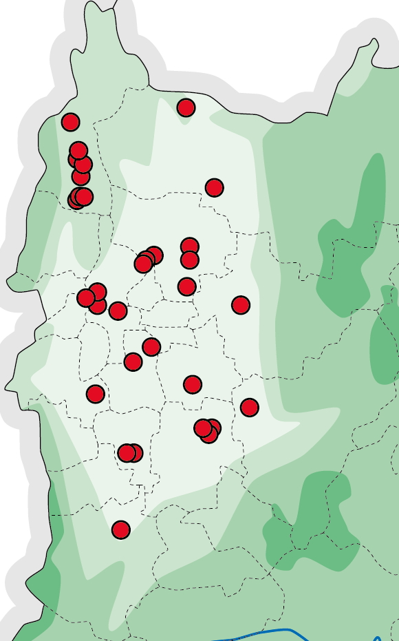 【三重県】おもに県北部に分布し、木津川水系と愛知県との県境に近いエリアに多い。