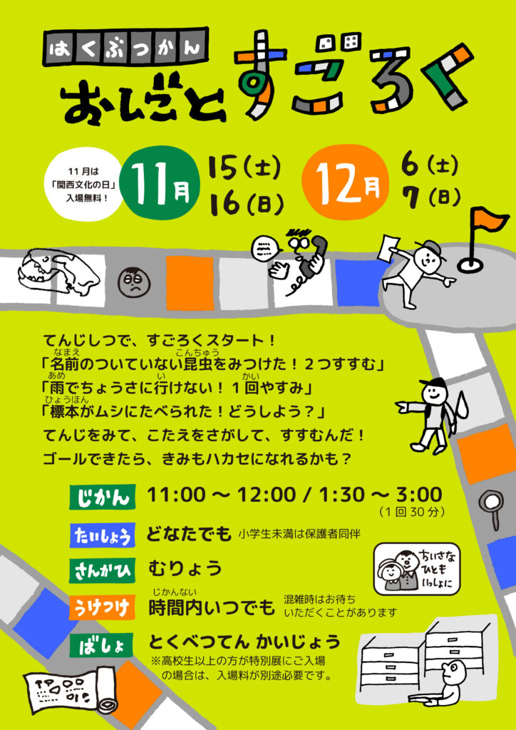 2025年10月16日 / 最終更新日時 : 2025年10月16日 omnh おしらせ 11月15日(土)、16日(日)、12月6日(土)、7日(日)子どもワークショップ「はくぶつかん おしごと すごろく」