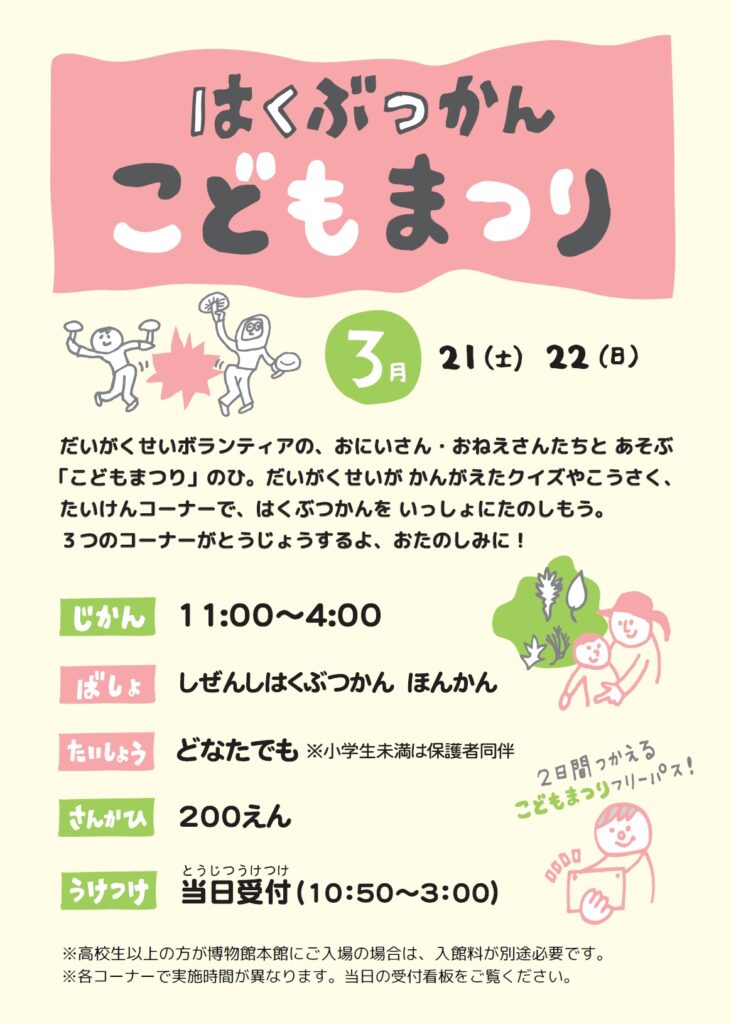 3月21日(土)、22日(日)「はくぶつかん こどもまつり」