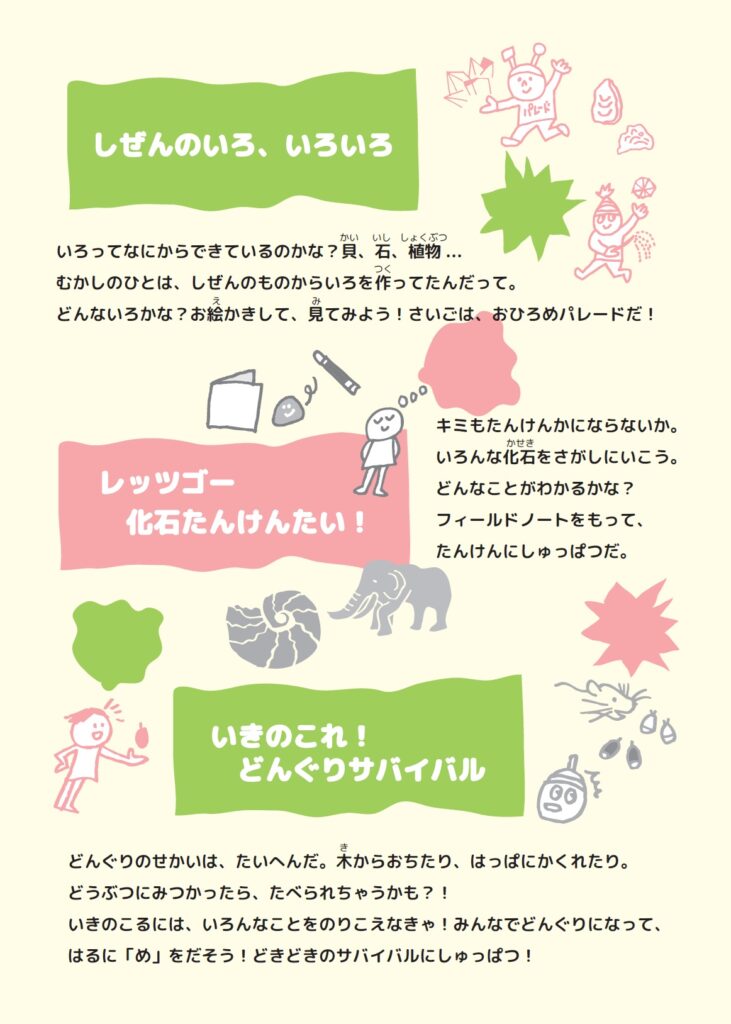 はくぶつかんで、いちばんやさしい子どもワークショップ。スタッフや、ハカセのおはなしをききながら、展示室でたのしい時間をすごしてね。「もっともっと、しりたいな・・・」そんなふうに思ったら、ハカセと、お話してみてね!