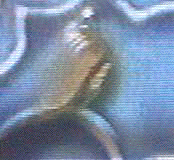 田んぼの中の見慣れない(と思っているだけでしょうけれど)生き物についてお尋ねしたいのです。それは、6mmくらいの貝殻をかぶったホウネンエビとでも形容できるものです。出所は堺市美木多上の同僚の田んぼの土に水を入れて4-5日で出現したもので非常に活発に動き回るものです。今日でそれから1週間ほどですが、ルーペで見たところ背中に卵を持っているようでした(下の写真の背中に当たるところに白く見えています)。お忙しいところ恐縮ですが、これが何か教えていただけないでしょうか?