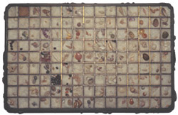 七重箱の枡の中の貝殻標本については故梶山彦太郎氏が分析された.貝類コレクションは古くから様々な形で所持する人の範囲が広く,蒹葭堂標本とするのに慎重を期すとしたうえで,当標本の特異性を述べている.