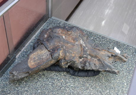 日本からはウシの仲間の化石は,あまり多く見つかっていません.その中ではスイギュウの化石は比較的多く見つかっています.スイギュウの角は,普通のウシやヤギュウの角とちがって,断面が三角形です.