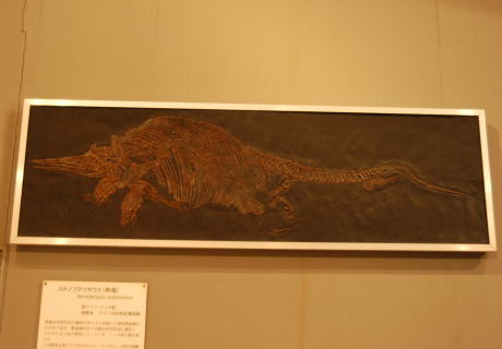 進化した魚竜のなかま.現在のイルカ類のような,流線型で泳ぐのに適した体を持っていました.ただし,イルカの尾びれは左右に広がっていますが,魚竜の尾びれは上下に広がっていました.子供は親の体の中で卵からかえってから生まれます.
