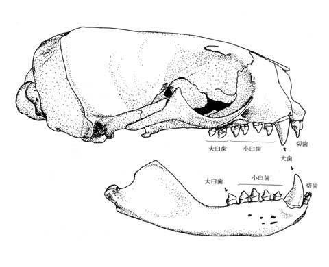 魚や、イカ、タコなどを食べています。しかし、えものをかみくだいたり、すりつぶしたりすることはせず、丸のみしてしまいます。歯はえものをとらえ、くわえる働きをするだけです。そのため、歯はすべて単純な円錐型で、小臼歯も大臼歯も同じ形です。