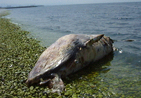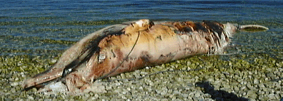 この夏,再び,鯨がやってきました.前回は96年の6月佐久間学芸員が採用され手間もない頃でした.5mほどのミンク鯨に学芸員ら職員が奮闘しました.その前は92年,大物のナガスクジラには学芸員だけでは歯が立たず,はるばる太地から「プロ」に来ていただき解体を行いました.なんのために?もちろん骨格標本にするためです.かつて海であった大阪の地下からはたくさんの鯨の化石が出ます.これらと比較するためにも,大阪ではめったに収集できない鯨の死体は貴重です.もちろん,DNAや脂肪・蛋白質も貴重な標本となります.今回流れ着いたのもミンク鯨.太地町の皆さんにいただいた長刀のような鯨包丁が再びとがれ,学芸員立ちは資料収集に向かいました.きっと新人学芸員は貴重な経験をしたことでしょう.