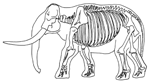 ナウマンゾウの牙は,マンモスゾウほどではありませんが,よく曲がり,ねじれています.頭の骨は横からみると四角く,ひたいの上の方が前へでっぱっているのが特徴です.大きなものでは,体高が3m近かったと考えられています.