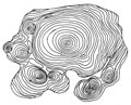 このヤクスギの標本は,大きな年輪があり,そのまわりを小さな年輪がとりかこんでいます.この木は生きていたヤクスギを切ったのではなく,古い切株から取ったものなので,外側のいたんでいた部分は取ってしまってあります.そのためわかりにくいのですが,小さな年輪の部分をとりこみ,全体をつつむ年輪が出来ていくのがわかります.おそらく枝が幹と合着してしまっているのです.このヤクズギが生きていた時には枝の合着はわからず,とても大きな1本の木のようにみえたことでしょう.