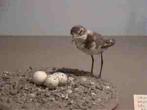 シロチドリは河川敷や海岸、埋立地などのひらけた地上に浅い穴を掘り、まわりの地面とあまり区別がつかないような巣を造って繁殖します。繁殖期は4月から7月くらいで、ふつう3個の卵をうみます。卵はウズラの卵と同じ大きさで、模様もよく似ています。
