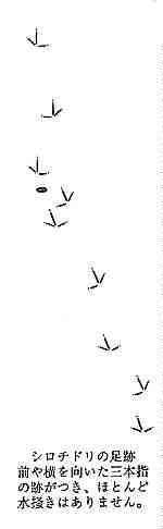チドリの仲間は数歩歩いては、たちどまって地面をつつくという行動をくり返して、食物をとります。食物はゴカイやカニ、昆虫、クモなどです。酒によっぱらって、フラフラと歩いている様子を千鳥足といいますが、チドリは決してフラフラと歩いているわけではありません。