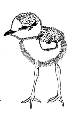 卵は約24日でかえります。ヒナはかえった時にはすでに羽毛がはえていて、しばらくするともう歩くこともできます。羽毛がはえているとは言っても、まだ翼の羽根や尾羽ははえてなくて、全身ふわふわとしたやわらかい羽毛でおおわれています。しかし足だけは一人前に大きく、丸い毛玉に大きな足がはえたような姿です。このようなヒナが走りまわる姿は、たいへんほほえましいものです。