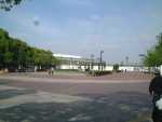 長居公園内の外周をぐるりとマラソン道路が囲んでいます。博物館へは、公園の内側を向いて右です。 |