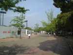 長居公園第二グランドを左手に見ながら進みます。右手にはミニグラウンドや公園遊具があります。 |