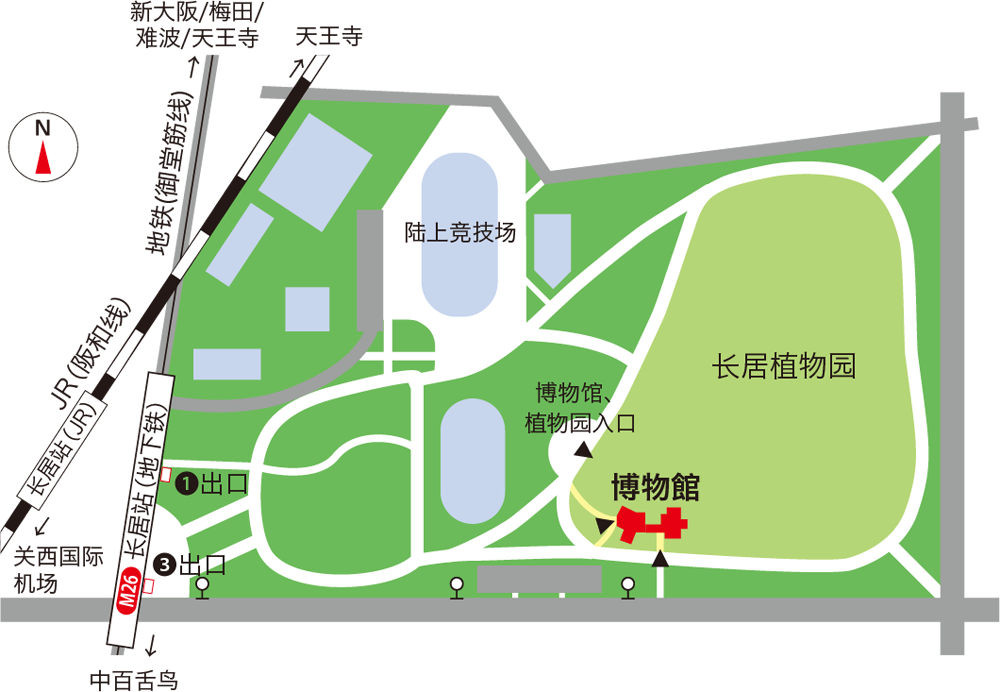 搭乘大阪市营地下铁御堂筋线往中百舌鸟方向,在长居站下车(约30分),从3号出口步行8分钟。
