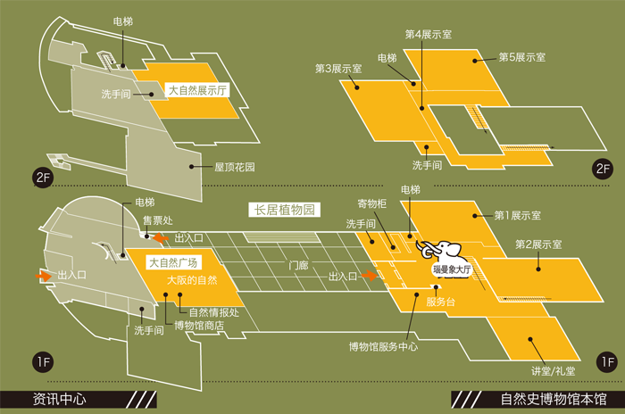 展示 介绍 自然与人类 自然史博物馆中的展示分成「自然的机制」、「自然的历史」、「人与自然的关联」这几个部分。希望大家能够透过本馆来理解自然、进而关怀自然。 自然史博物馆本馆 门廊 大自然广场 瑙曼象大厅 第1展示室: 生活周遭的自然 第2展示室: 地球与生命的歷史 第3展示室: 生命的进化 第4展示室: 大自然的恩惠 第5展示室: 生物的生活 大自然展示厅 结语