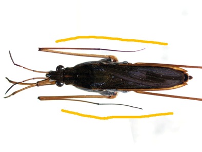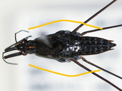 b 体は長細く両側平行にちかい [体長8-11mm]...... ヒメアメンボ