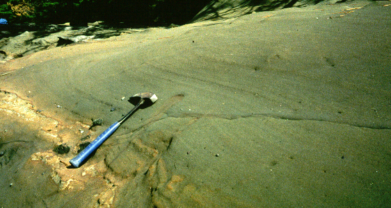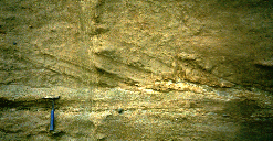 姉ヶ浜砂岩部層上部の潮汐起源と考えられる斜層理.