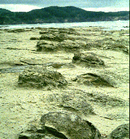 畳ヶ浦砂岩部層に見られるノジュール群.