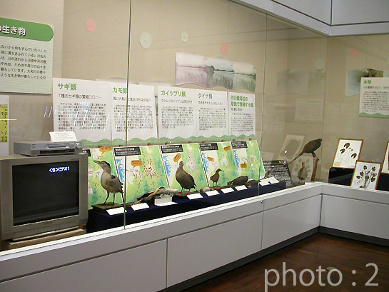 2. 大和川水系の鳥の分布図。大和川水系の様々な生き物の分布を明らかにし、その分布図を展示しました。