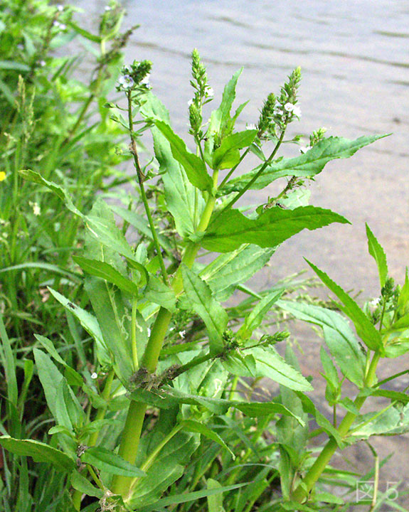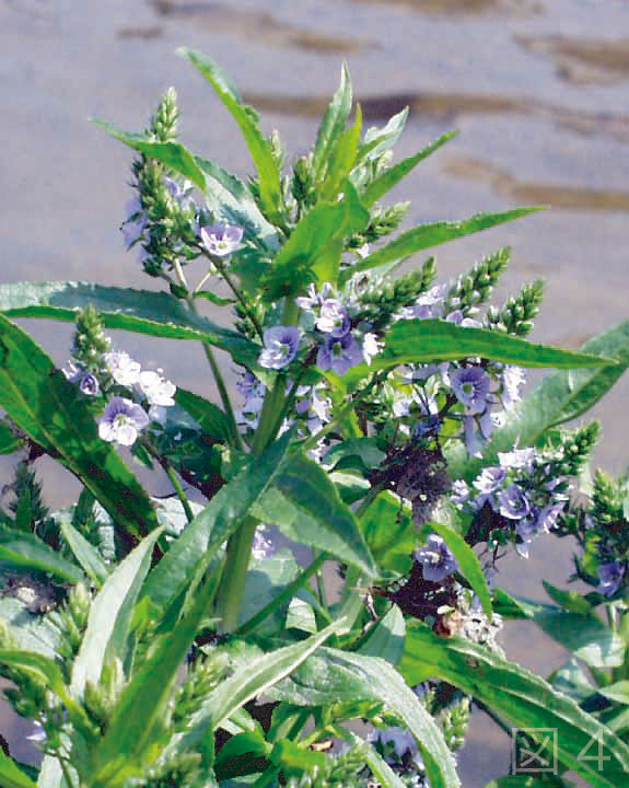 5月〜7月にかけて、本州以南の川辺には可憐な白い花をつけたカワヂシャ(ゴマノハグサ科)が生えています。