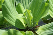 レタス?いえいえ、ウォーターレタスの別名を持つ、外来水草のボタンウキクサ(サトイモ科)です。