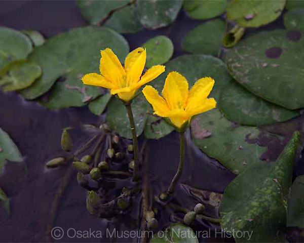 アサザ(ミツガシワ科)は河川、水路、湖沼、ため池に生育する浮葉性の水生植物です。