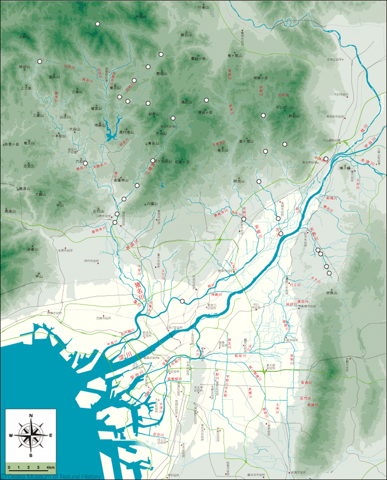 調査の報告があまりない前回の大和川水系では、全域にわたって標本採集に努めましたが、淀川水系の支川については、主だったものの調査は、各方面で調査なされており、今回は、それ以外の細流、水路、上流域、町中を重点を置き調査をしたいと思います。もちろん、主だった河川、本流の調査も予定しています。